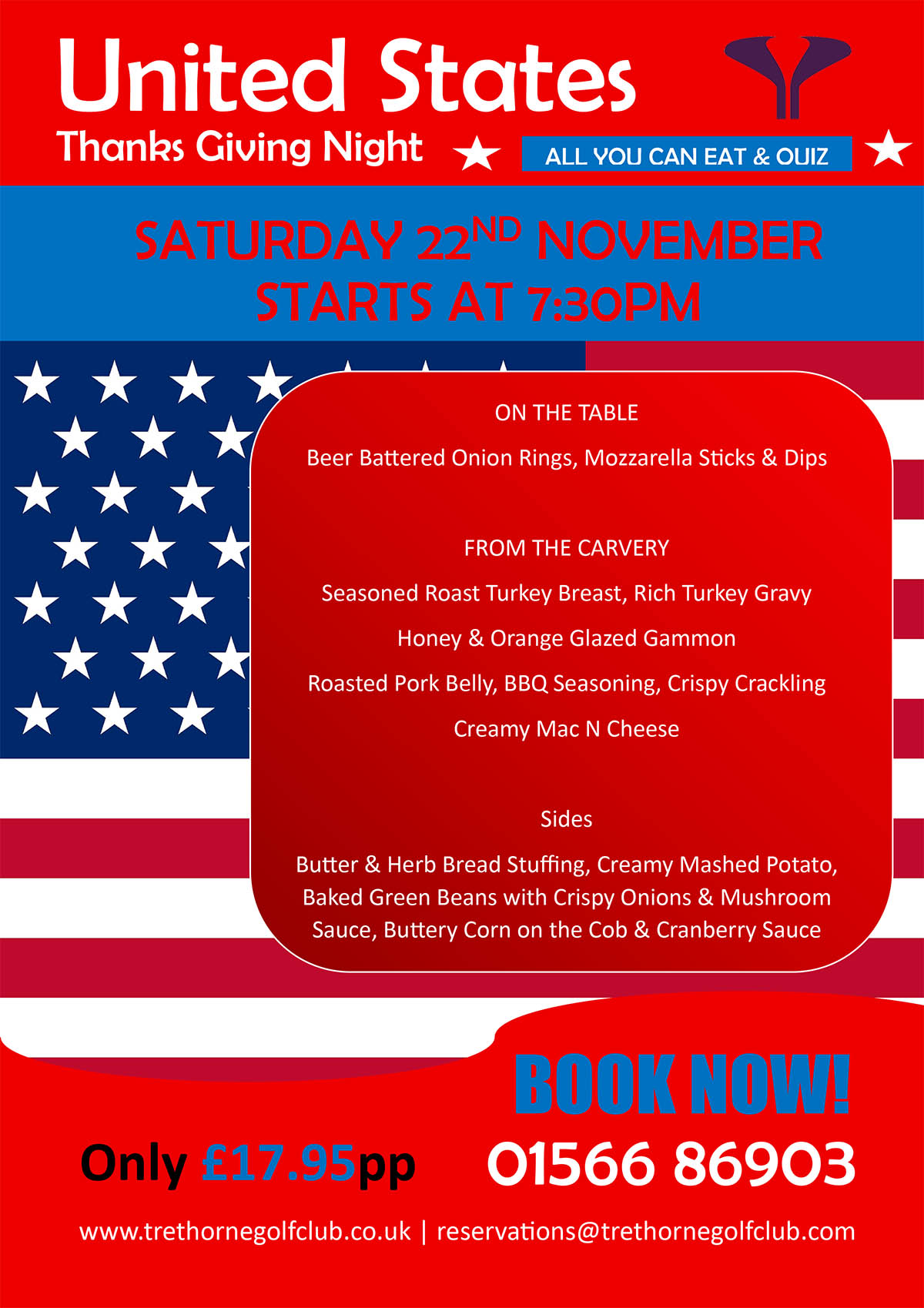 Celebrate Thanksgiving like our American friends across the pond at All You Can Eat & Quiz Night on Saturday 22nd November 2025